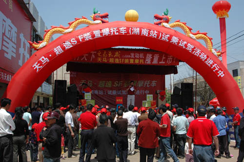 2008年5月11日,湖南长沙,在长沙黄花机场所在地的黄花镇,天马天威系列、天马·超逸SF装置摩托“试乘试驾”活动在这里启动了全国的第一站!