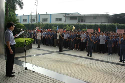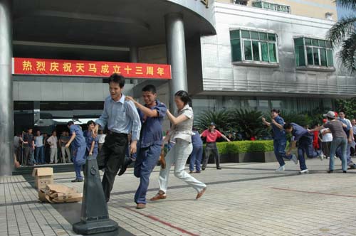 公司全体员工集中于办公楼前广场。公司领导戴振华常务副总经理、卢嘉兴副总经理、夏帝祐副总经理、陈国辉副总经理等领导参加了庆祝活动开幕式。戴振华常务副总经理代表公司领导发言,他说,天马人以团结奋进的精神,一路开拓进取。今天,天马迎来了她的十三周岁生日。我们举行丰富多彩的文体活动,就是展示我们天马人齐心协力、奋发向上的精神风貌!面对激烈的摩托车竞争环境,我们直面面对,并实施我们的“天道·翔”计划,现阶段,我们正大力推广具有我们知识产权的天马天威发动机、天马·超逸SF装置系列摩托车。希望我们所有人继续发扬团结奋进的精神,共同努力,开创天马的新天地。
