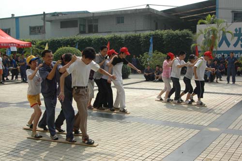 带给大家最多笑声的要数“比肩跳接力”和“长板鞋接力”两个项目了。这两个项目都是多人合作参与的项目,充分体现团队协作精神,每个小组4人,需要4人之间齐心协力的技巧。现场不时出现人仰马翻的情况。