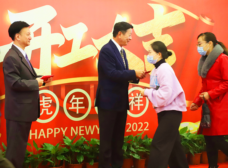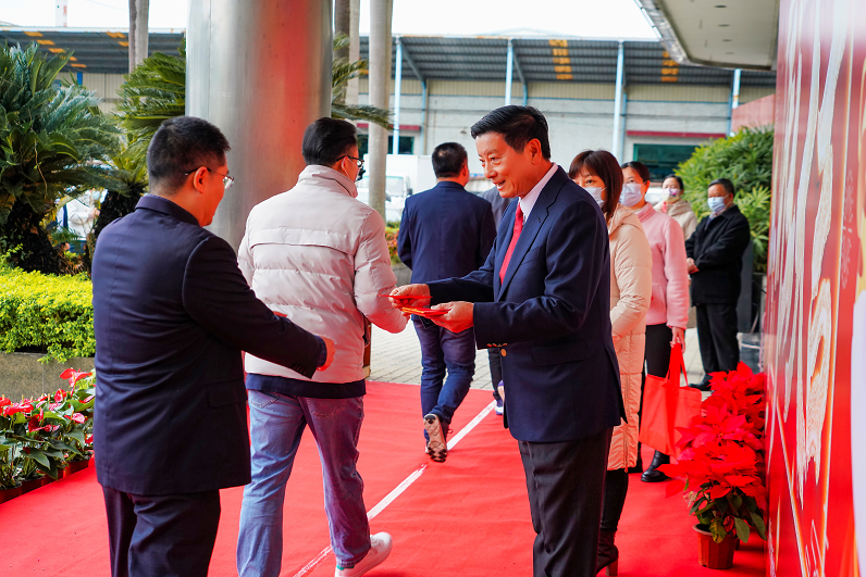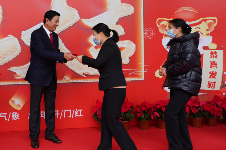 新年派发开工利是,是天马集团的传统活动。2022年农历新年伊始,集团董事长刘维嘉先生亲临旗下各企业(天马摩托车公司、天马配件厂、川化减震器公司、精通教育投资有限公司、凯旋宫饮食有限公司、凯旋宫出租汽车公司、凤凰机动车服务公司、广州翡翠希尔顿酒店、广州城建职业学院、广州城建技工学校、维肯中英文国际幼儿园)和员工欢聚一堂,共同庆祝新年开工。刘维嘉先生给每位员工派发开工利是,并致以新年的祝福。虽然春寒料峭,但大家的脸上都洋溢着幸福的笑容,共同祈愿天马集团开工大吉,鸿图大展!